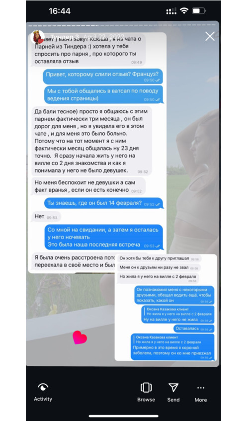 А однажды мне пишет возмущенная девочка с Казахстана. Присылает фото парня из отзывов (тот турок с моего свидания, который всё удивлялся зарплатам в Дубае). Она пишет: «Вот же козёл, всё не так было. Он жадный, грубый пополамщик… Сразу хотел затащить меня к себе!» И все контраргументы про него. По факту оказалось, что турок не только нищеброд, но и лжец.