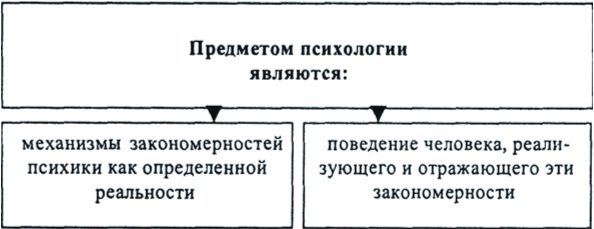 Таким образом, предметом психологии являются механизм закономерности психики как определенной реальности и поведение человека, реализующего и отражающего эти закономерности. Ключевым моментом предмета психологии является понятие “управление”. Душа (“психе”), психика управляет человеком как целостным объектом, не выделяя его отдельных органов или составляющих частей.