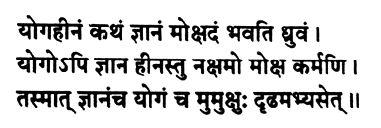 Без практики йоги даже сильное желание реализации не приведёт к Высшему. Одна практика йоги без джняны (сильного желания освобождения) также неспособна привести к освобождению. Таким образом, тот, кто желает освобождения, должен постоянно практиковать как желание соединиться с Высшей Сущностью, так и йогу.