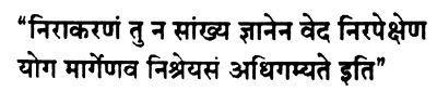 Но единственная причина порицания Санкхьи и Йоги состоит в том, что знания Санкхьи и практика Йоги не приносят пользы в реализации Брахмана.