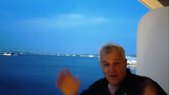 Пошли на верхнюю палубу смотреть отход. От порта уже отошли километра на два. Рио как на ладни. Вся палуба запружена пассажирами. Всем интересно прощаться с Рио де Жанейро. Прощай Рио. Да хранит нас Христос с горы Караваджо. Статуя светится в ночи, провожая нас в очередное путешествие. Огоньки становятся меньше и меньше. Рио превращается в одно светящее пятно. Вот и закончились 3 дня в Бразилии. Маловато будет. Ну да какие наши годы. Бог даст, наверстаем.