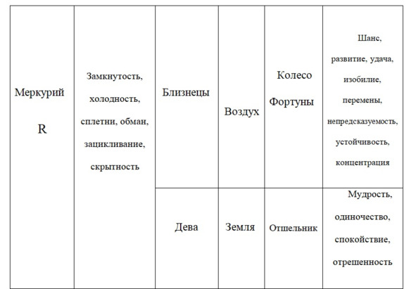 Как же соотнести двадцать два аркана с двенадцатью знаками и десятью планетами? Казалось бы, это почти неразрешимая задача, но, ведь, арканы так хорошо ложатся на характерологические особенности планет и знаков. И тут пришло озарение… Есть же ретроградное положение планет, которое так же необходимо учитывать! Так родилась таблица соответствий.