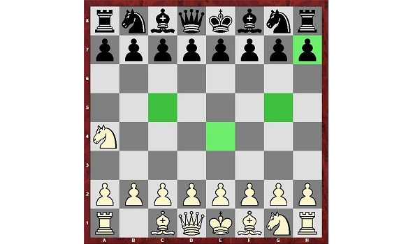 Например, посмотрите – сколько будет скакать конь с одного фланга на другой или из центра на фланг. Допустим ему нужно помочь в атаке и попасть на поле h7.