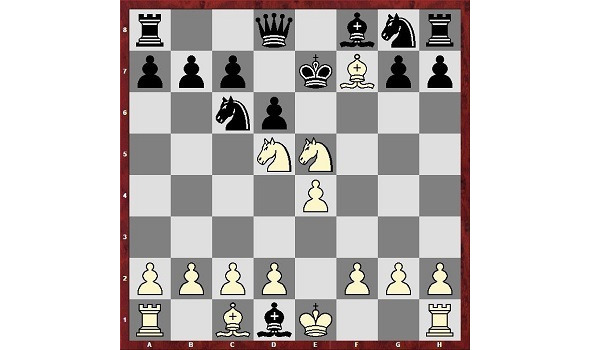 1.e4 Кf6 2.e5 Кd5 3.d4 d6 4.c4 Кb6 5.f4