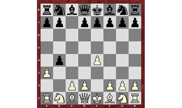На ход е2-е4, черные отвечают любой ход кроме е7-е5.
