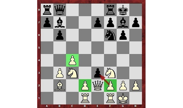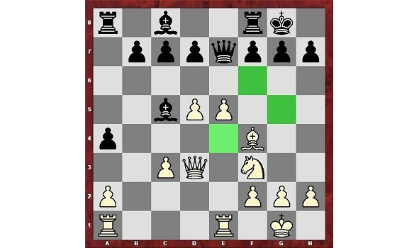 Здесь белым нужно играть fe, чтобы затем создать мощный центр из пешек c-d-e. Кроме того открывается линия f для ладьи, которая до этого бездействовала (ладья на поле d1 стоит уже на активной позиции, она будет помогать продвижению пешек).