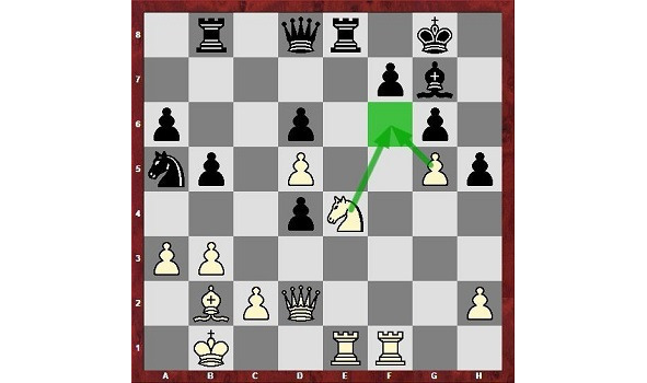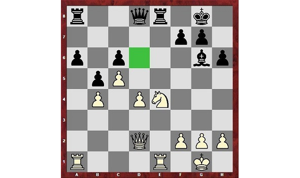 На диаграмме у черных слабое поле f6, расположенное рядом с позицией короля. Туда может направиться белый конь а затем пешка и при поддержке ферзя создаются матовые угрозы.