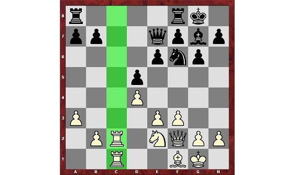 Белые захватили вертикаль «с», это и определяет их преимущество. Черные сейчас не могут поставить свою ладью на с8, чтобы помешать вторжению белых на поле c7. Чтобы отразить угрозу вторжения, придется играть конь е8, а это сковывает все фигуры черных.