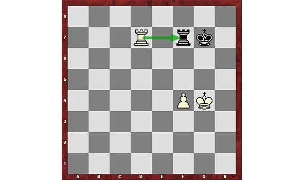 У белых лишняя пешка, но могут ли они поменять ладей, чтобы выиграть? Рассчитывать вариант до конца довольно сложно, можно ошибиться, а если к тому же мало времени. Так вот в эндшпиле достаточно просто знать, как оценивается такая позиция (король с пешкой против короля).