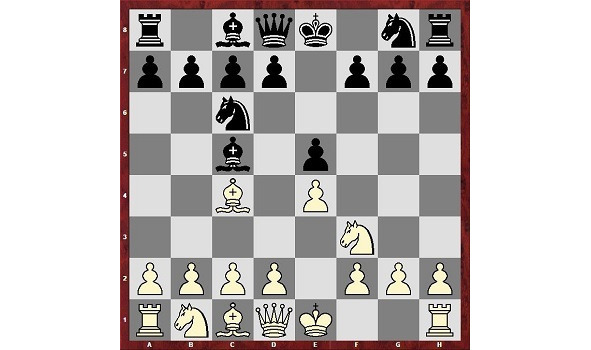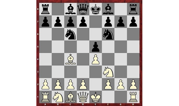 Венгерскую партию 1.е4 е5 2.Кf3 Kc6 3.Cc4 Се7.