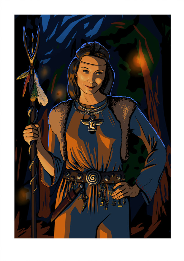 Наперво, оказалась чародейка вовсе не оборванной страшной старухой, а статной красивой женщиной в крашеном тёмно-сером платье, подпоясанном широким кожаным ремнём. На дорогом том ремне чернели серебром бляхи, висел нож и превеликое множество шелестящих подвесок-оберегов. Поверх платья надета была меховая короткая беличья безрукавка, а через плечо – объёмная тканевая сума. Волосы у женщины были тёмные, густые, с каким-то особым блеском, небрежно перехваченные в нескольких местах простой верёвкой. На шее тускло поблёскивала массивная серебряная двойная витая гривна103, к коей крепилась аккуратная подвеска – птица с распростёртыми крыльями.