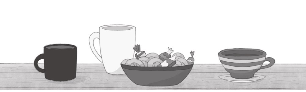 Она забежала в дом и буквально через пару минут вышла с подносом в руках. На подносе дымились три чашки, посередине высилась горочка конфет и сушек.