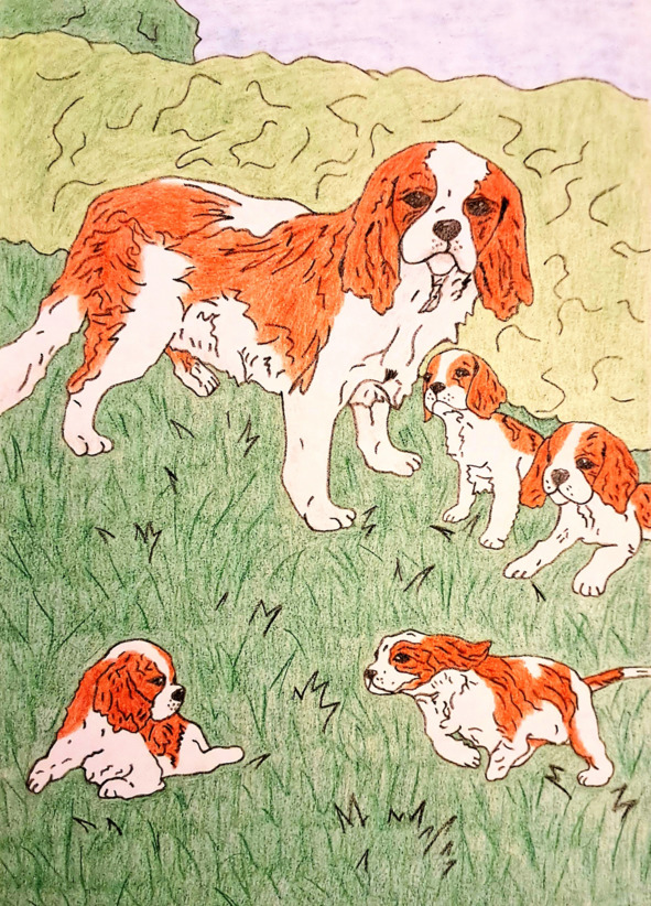 Во дворике небольшой будки, к которой подошли Берта и Дорис, без остановки резвились и бегали четыре очень подвижных щенка. А их мама, приятельница Дорис Эбби, никак не могла собрать их вместе.
