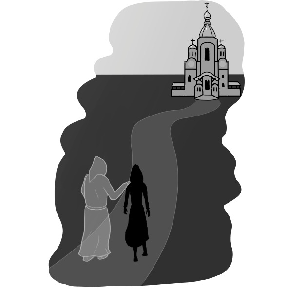 Знакомая дорога в Храм. Все, кто встречается с Марусей по дороге, здороваются с ней, как обычно, но в глазах у них что-то… не так. Кто-то выглядит ошарашенным или даже испуганным, большинство растеряны, кто-то прячет взгляд и даже слёзы… Да и сама Маруся…