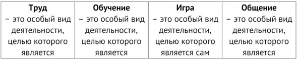 Различают четыре основных ВИДА ДЕЯТЕЛЬНОСТИ