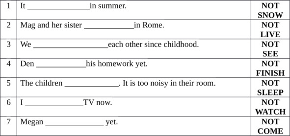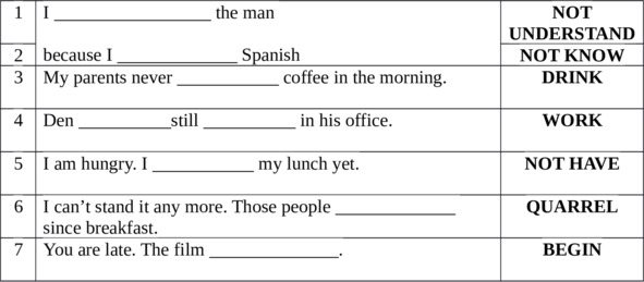 Занятия №№11—13. Настоящие времена: Present Simple/ Present Continuous/ Present Perfect/ Present Perfect-Continuous (отрицательные предложения)