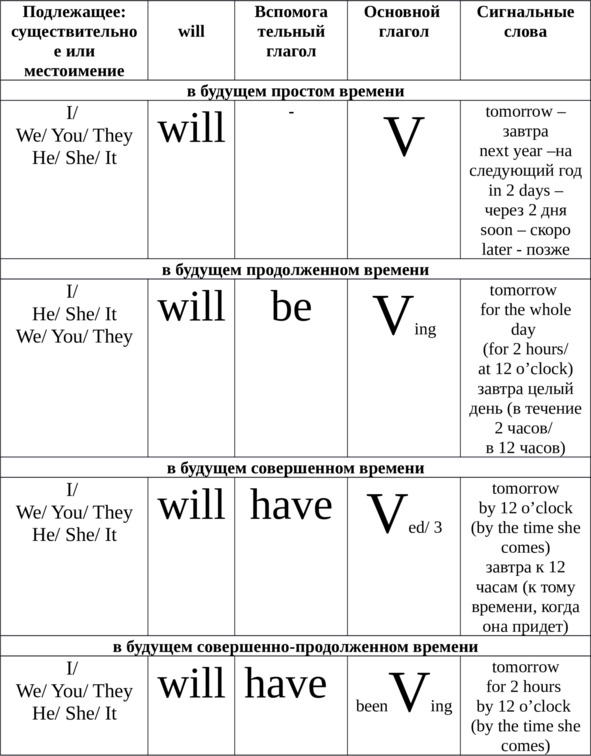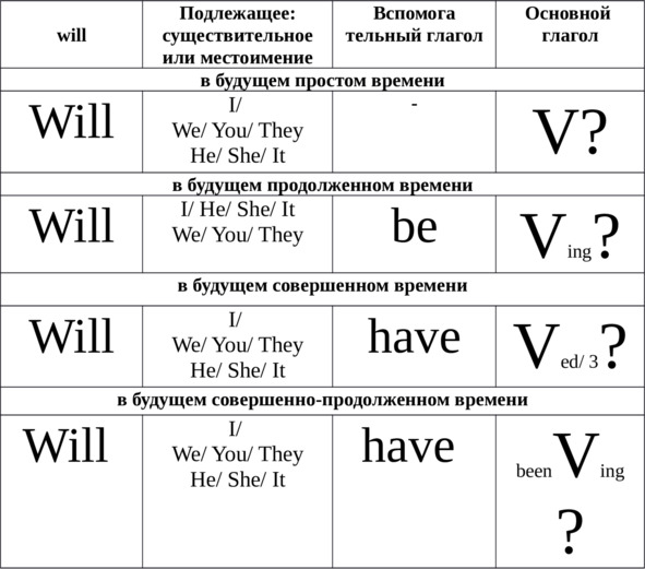 Занятия №№26—28. Будущие времена: Future Simple/ Future Continuous/ Future Perfect/ Future Perfect-Continuous (отрицательные и вопросительные предложения)