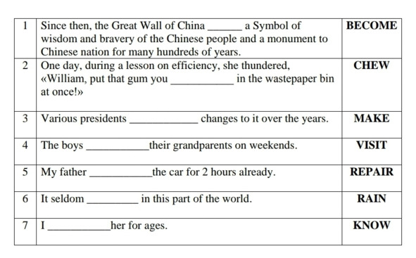 Преобразуйте слова так, чтобы они грамматически соответствовали содержанию предложений.