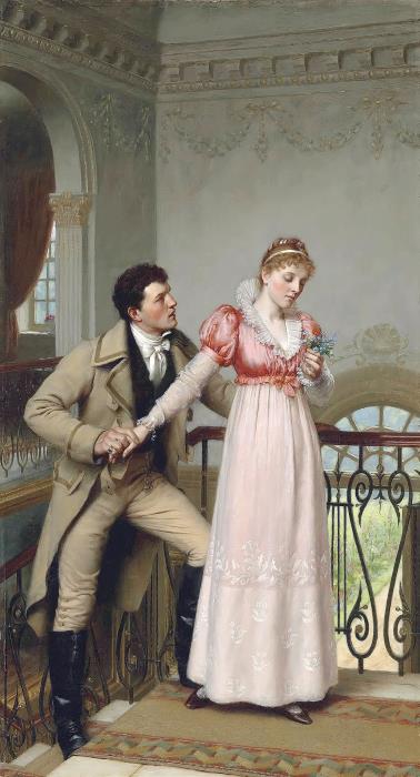 На седьмом поцелуе дверь из ближайшей комнаты распахивается, и сладкая парочка оказывается на свету. Видит Александр, что целует он страстно вовсе не горничную Наташу, а саму фрейлину императрицы, княжну Варвару Михайловну Волконскую, пребывавшую в его объятиях в полуобморочном состоянии.