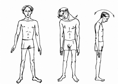 Традиционно разминку советуют начинать с головы. Голова, в общем, довольно малоподвижная часть тела, поэтому под разминкой головы подразумевают разминку шеи. Исходное положение: стоя, ноги – на уровне плеч, спина прямая. Расслабься. И начинаем: