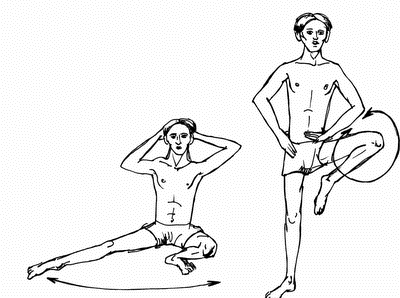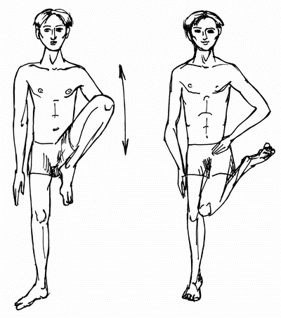 10. Вставай. Исходное положение еще помнишь? Теперь подними колено. Правое или левое – неважно. Главное – не оба сразу. Вращение коленом – по кругу. Затем, естественно, ноги меняем.