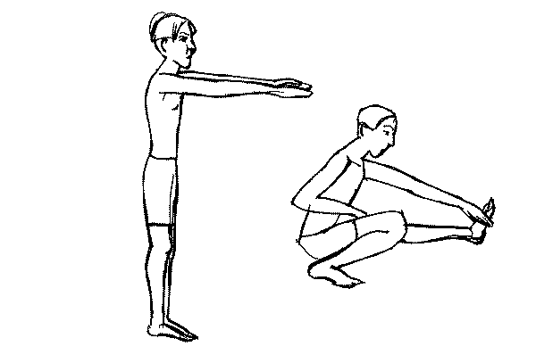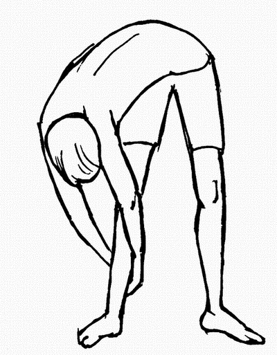 Упражнение шестое: «Дракон обвивает нефритовый столб, вытягивая мышцы». Вовсе несложное упражнение, если ты обладаешь хорошей гибкостью. Если нет, то тебе просто необходимо его делать! Потому что без гибкой поясницы нет ни грации при ходьбе, ни ловкости в движениях, ни плавности в танце. Само же движение заключается в наклонах попеременно к правой и левой ноге. Однако это не простые, а азиатские наклоны. То есть делать их нужно медленно и с чувством, прилагая усилие исключительно на выдохе и не прерывая дыхание. Чтобы усилить растягивающий эффект, обхватываем руками лодыжку той ноги, к которой совершаем наклон. В таком «согнутом» положении желательно застыть на несколько секунд, затем, не распрямляясь, перекинуть руки на лодыжку оставшейся ноги и тянуться уже к ней. Чем больше количество переходов, тем лучше. Выбирай сам.
