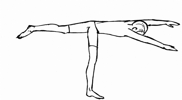 Упражнение одиннадцатое: «Большой орел раскрыл крылья и кружит». После шпагата неплохо было бы немного расслабиться. Исходное положение: стоя, руки свободно свисают вдоль корпуса, тело расслаблено. Наклонись вперед, вытянув назад правую ногу с вытянутым от себя носком. Руки вытягиваются в стороны, как крылья орла. Теперь ты и есть орел, и как всякий орел, который должен охранять свою территорию, тебе нужно кружить над своей вершиной. Однако прыгать на одной ноге тебе не придется: все-таки мы не кенгуру, а орлы. Просто медленно поворачивайся на опорной (той, которая стоит на полу) ноге против часовой стрелки (в левую сторону). Круг должен быть полным – если в начале поворота твоя голова была обращена в сторону окна, то и в конце движения она должна смотреть туда же. Теперь поменяй ноги и повтори упражнение в другую сторону. Теперь о тонкостях: нога и корпус должны быть параллельны полу и находиться в одной плоскости. Представь, что ты упираешься спиной в потолок, который просто не даст тебе задрать ногу либо голову выше положенного. Опорная нога, то есть та, на которую ты опираешься, должна быть выпрямлена в колене. Вот и вся мудрость.