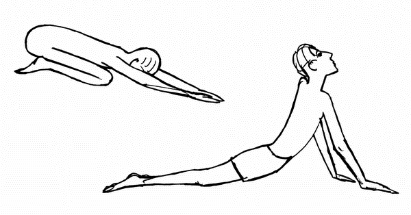 Упражнение шеснадцатое: «Свирепый тигр, наклонившись, раскачивается взад и вперед». В йоге есть похожее движение, которое, впрочем, приписывают обычной кошке, а не «свирепому тигру». Итак, все тот же порядком, наверное, тебе опостылевший упор лежа. Теперь представь себя тигром, если ты, конечно, видел, как тигры потягиваются. Если же нет, вспомни, как выгибается поутру обычная домашняя Мурка, и попробуй прогнуть спинку точно так же – сначала прогнись назад, вытянув руки до дрожи в локтях. Затем плавно и грациозно над полом проходит грудь, затем – живот, потом, когда голова и плечи уже поднимаются вверх, – бедра. Ненадолго застынь в верхней позиции – руки снова выпрямлены, голова чуть запрокинуты назад, все напряжение – в изогнутой в «мостике» пояснице. И – в обратном порядке: попа вновь устремляется вверх, занимая несвойственное ей положение выше головы, тело подается назад, руки вытягиваются, отталкивая корпус. Несложно, не так ли? После «тигра» спина должна сладко ныть, если же нет, то ты либо отменно халтурил, либо у тебя идеально гибкий позвоночник.