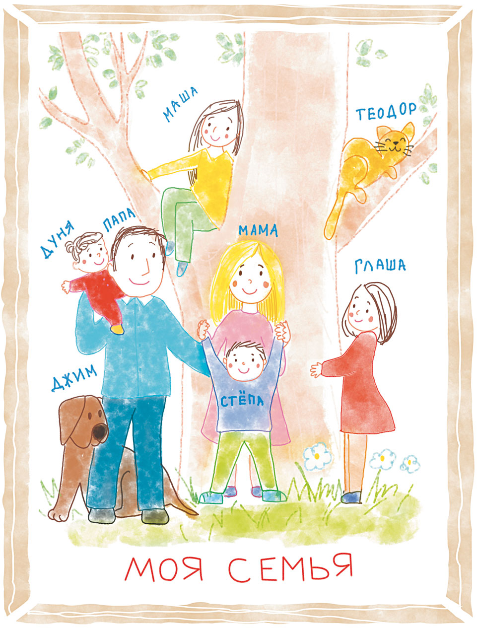 Я живу с родителями, сёстрами, собаками и кошками – это моя семья.