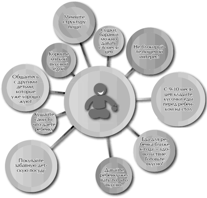 10. Общайтесь с другими детьми, которые уже хорошо жуют, устраивайте совместные обеды и перекусы. Помните, что дети – это «зеркала», они приобретают новые навыки, повторяя за окружающими.