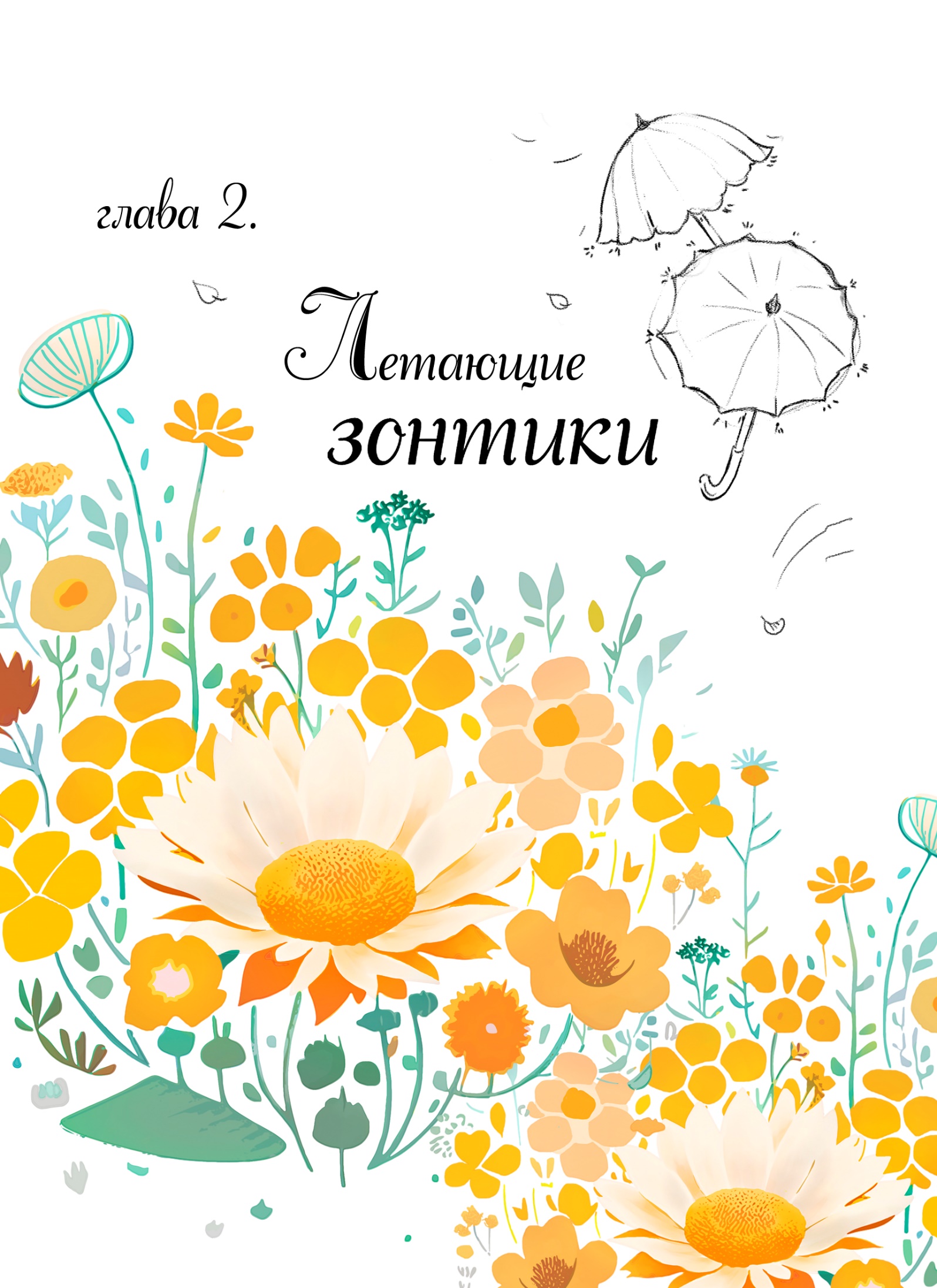Настя почувствовала мягкое тепло на ладонях, зонтик зашевелился, и она сразу рассмеялась!. Необычные лапки этого зонтика щекотали маленькие ладошки, и это было очень приятно! Потом зонтик стал совсем невесомым, и вокруг него, будто из воздуха, стала собираться мелодия. Тоненький колокольчик немного потрескивал по пальчикам, Настя восхищенно стояла, боясь потревожить такое нежное создание. Зонтик мягко поднялся вверх, и полетел над высокими лавандовыми деревьями..