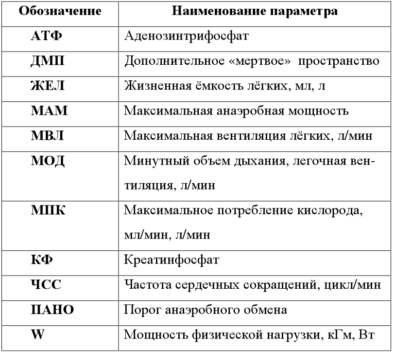 СПИСОК УСЛОВНЫХ ОБОЗНАЧЕНИЙ