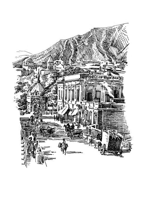 Главная улица Тифлиса – Головинский проспект. Ширина мостовой – целых двадцать саженей. На Головинском проспекте расположены кадетский корпус, Казенный театр, Александровский сад, Александро-Невский военный собор, гауптвахта, лучшие магазины и рестораны. А кроме того, дворец наместника – он красив и представителен. В саду, окружающем дворец, сохранились два чинара, посаженные еще Ермоловым.