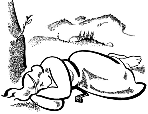 Между тем Локи уже начал раскаиваться в том, что так легкомысленно прозакладывал свою голову, и решил во что бы то ни стало помешать Синдри её выиграть. Он превратился в муху и, усевшись на лицо Броку, стал изо всех сил его щекотать. Брок морщился, тряс головой, но работы не бросал. Вскоре в мастерскую вошёл Синдри, и Локи поспешил принять свой обычный вид.