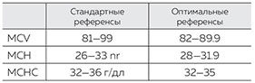 В этом же анализе нужно обратить внимание на показатели MCV, MCH, MCHC, которые характеризуют ширину распределения эритроцитов и наполнение эритроцита гемоглобином. Здесь также необходимо ориентироваться не на стандартные, а на оптимальные референсные значения. Например, если у вас показатель MCV составляет 90, что соответствует стандартному референсу, это следует рассматривать не как норму, а как повышенное значение. Повышение данного показателя может свидетельствовать об анемии, гипохлоргидрии – пониженной кислотности желудка, гипотериозе – нарушении функции щитовидной железы, а также о некоторых болезнях печени.