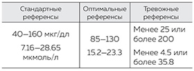 – Смотреть нужно не на стандартные референсы, которые являются средними значениями данных показателей, а на оптимумы. Анализы в референсах могут быть нормальными, но если вы выходите за пределы оптимумов – ваше здоровье уже не в порядке, по ним мы можем судить, в какую сторону движется отклонение. Референсы, по которым врачи ставят диагноз, имеют большой разброс, если вы вышли за их пределы, то болезнь приняла тяжелую форму.