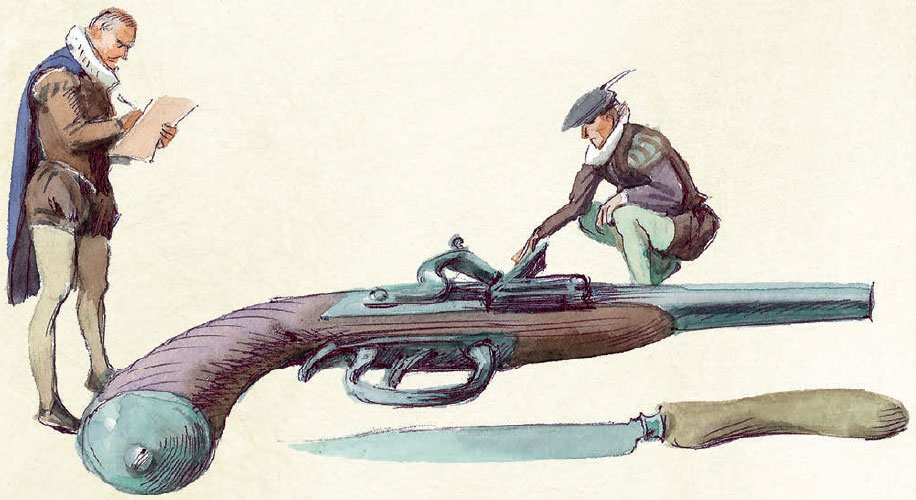 Гулливер вытащил пистолет, кошелек с монетами, карманный ножик и часы. Император прежде всего осмотрел нож и кортик, а потом приказал Гулливеру показать, как стреляют из пистолета.