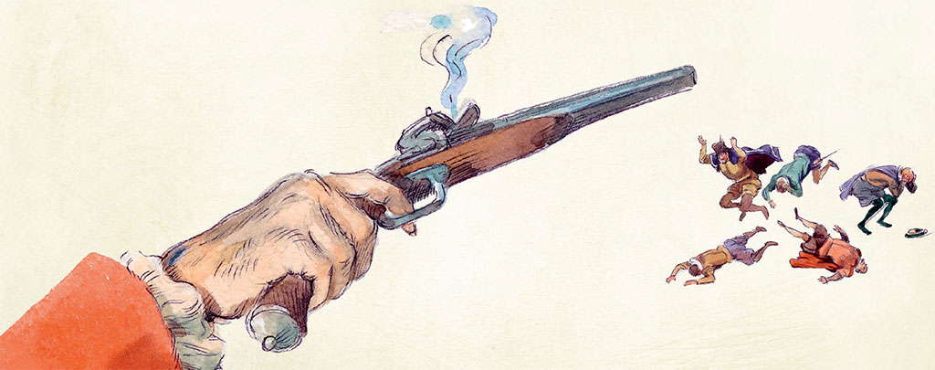 Когда дым рассеялся и все успокоились, повелитель Лилипутии приказал увезти в арсенал нож, кортик и пистолет.