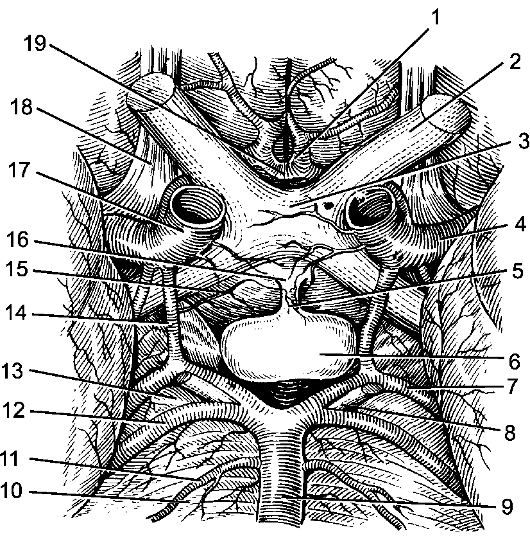 10 – основная (базилярная) артерия;