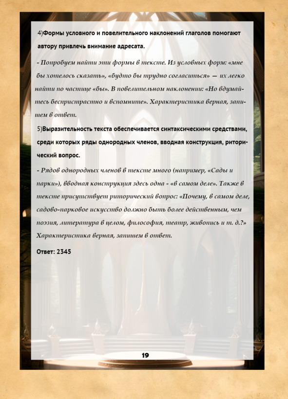 В этом задании вас будут проверять на знание стилей текста, видов лексики, типов речи, синтаксических, грамматических, лексических и речевых средств.