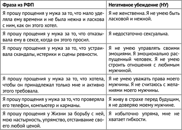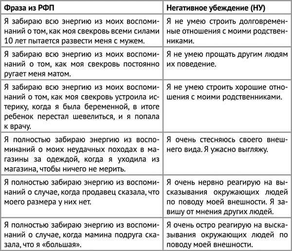 Почти из каждой фразы РФП вы можете «вытащить» какое-то убеждение, которое породило ваши переживания.