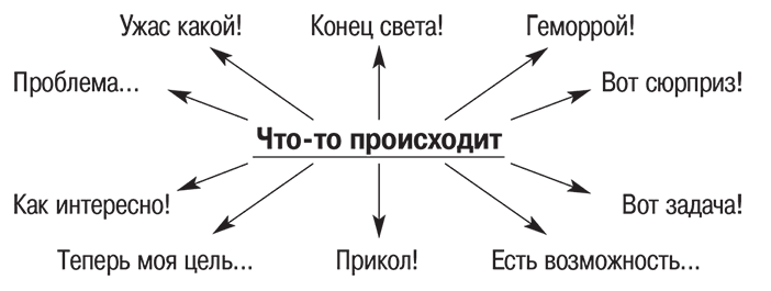 В общем, упражнение понятно. Чтобы с вами ни случалось, помните: вы сами выбираете, чем этот факт будет для вас: неразрешимой проблемой или интересной возможностью, концом света или началом новой жизни.