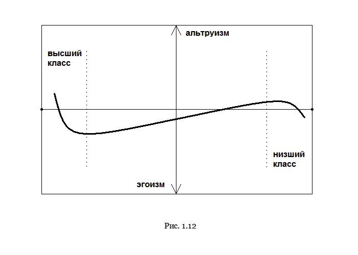 Первая крамольная мысль приходящая в голову при сравнении рисунка 1.13 с предыдущими (1.2, 1.3, 1.5, 1.6 и т.д.) – он слишком уж вертикально несимметричен. Если раньше альтруизм как бы уравновешивался эгоизмом, то теперь дело выглядит так, словно человек становится абсолютным альтруистом, что нарушает некий фундаментальный баланс, наблюдавшийся всю историю. Не ошибка ли это? Не утопия ли? Не пытался ли художник выдать нам желаемое за действительное?