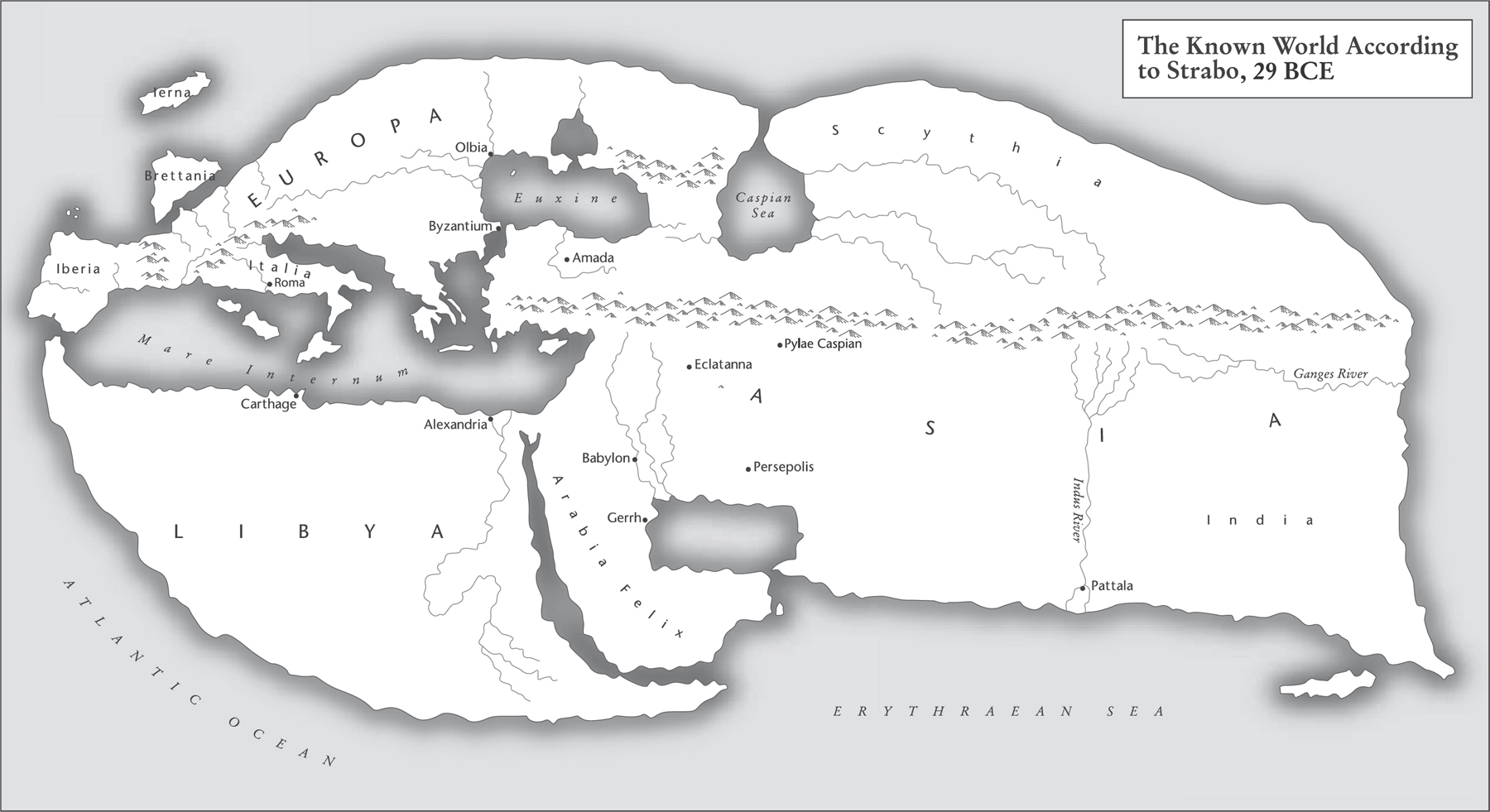 With such an education, contacts and considerable help from the bank of Mum and Dad, Strabo was able to travel and indulge his enquiring mind. He wrote his modestly titled Historical Notes, which in fact was a huge undertaking in 43 volumes that, alas, is now lost. However, his Geographica (‘Geography’), an encyclopaedia of geographical knowledge in 17 volumes, survives – that is, almost survives; part of the end of Volume Seven is lost.
