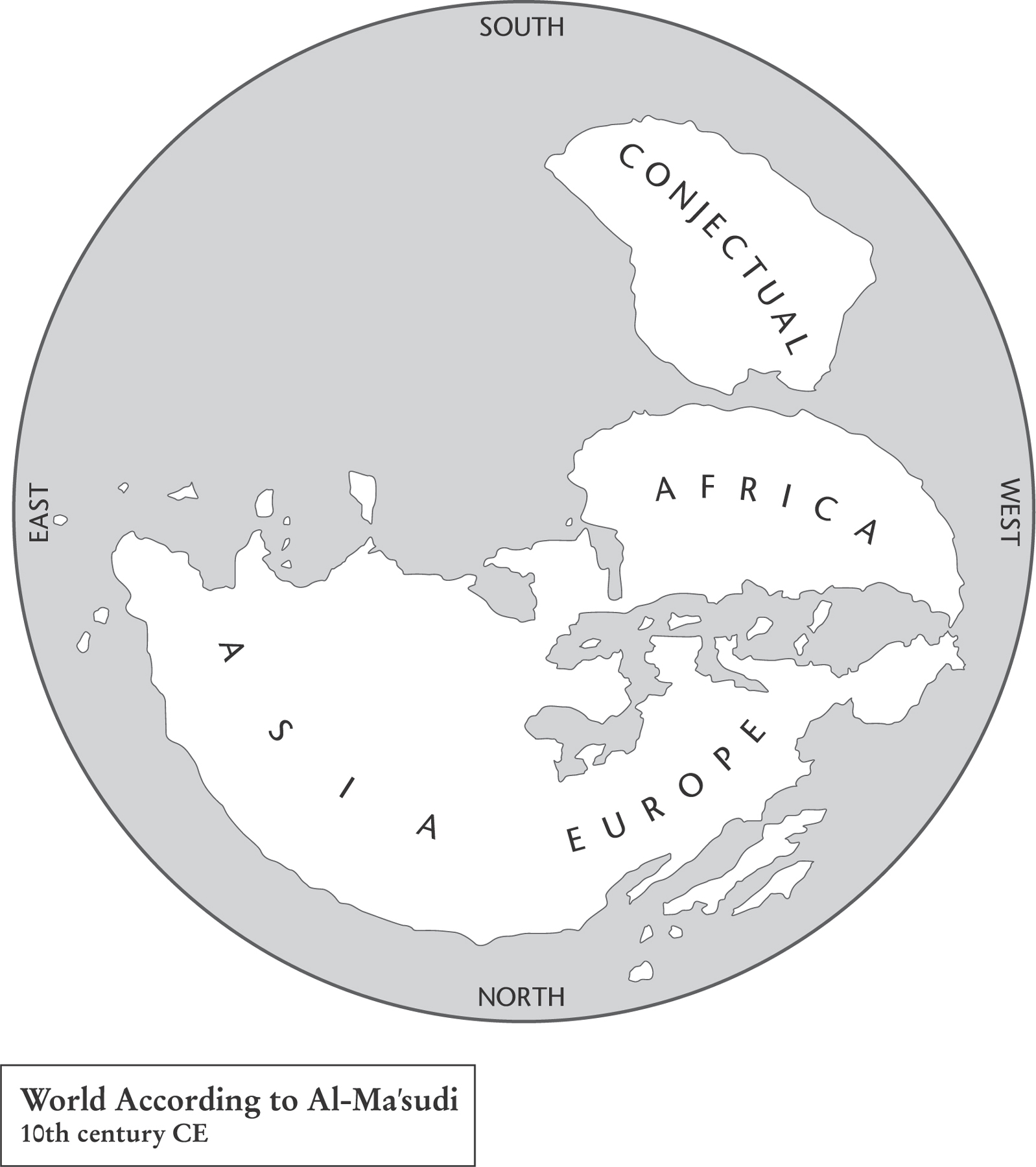 Map 16. Al-Mas’udi was an Arab historian, geographer and explorer. His world map, which followed Arab tradition at the time, viewed the world with south at the top.