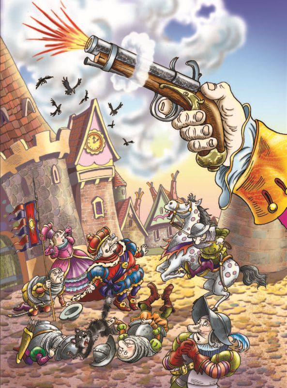 Когда дым рассеялся и все успокоились, повелитель Лилипутии приказал увезти в арсенал нож, кортик и пистолет.