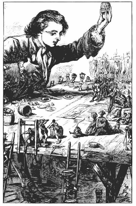 Вокруг неё Гулливер поставил перильца и предложил императору устроить на этой площадке военное состязание.