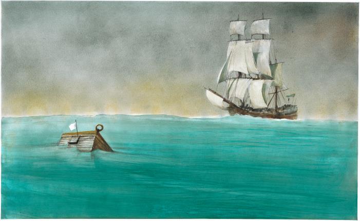 Шестерым из экипажа, в том числе и мне, удалось спустить шлюпку и отойти от корабля и скалы. По моему расчёту, мы прошли на вёслах только около трёх миль. Последние дни всем нам пришлось так много работать на корабле, что теперь мы были не в силах грести дальше. Мы побросали вёсла и отдались на волю волн. Через полчаса налетевший с севера шквал опрокинул нашу лодку. Не знаю, что сталось с моими спутниками, находившимися в лодке, а также с теми, кто искал спасения на скале или остался на корабле. Думаю, что все они погибли.