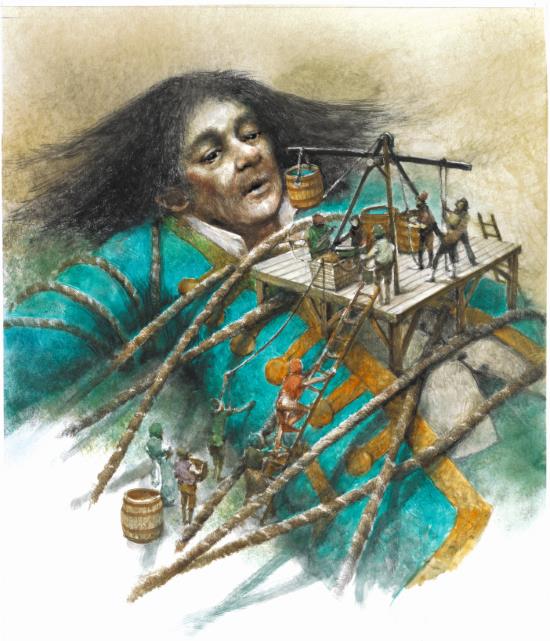 Люди эти – превосходные математики и благодаря поддержке и поощрению императора, известного покровителя наук, достигли большого совершенства в механике. В распоряжении этого монарха имеются разные машины на колёсах для перевозки брёвен и других больших тяжестей. Здесь принято строить самые крупные военные корабли – до девяти футов длины – в местах, где растёт строевой лес. Затем их поднимают на эти машины и перевозят к морю.