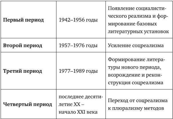 Чэнь Сыхэ [14] в «Учебном пособии по истории новейшей китайской литературы» рассматривает 1949–1978 годы как единый период от образования КНР до III Пленума ЦК КПК 11-го созыва. Вторым периодом ученый называет 1978–1989 годы, третьим – последнее десятилетие ХХ века. Если обобщить, то 1942–1992 годы можно считать одним периодом. В эти пятьдесят лет в литературе доминировала эстетика социалистического реализма и наблюдалось усиление модернистских явлений. В период с 1992 года и по настоящее время (более того, это распространяется на будущее) благодаря разнообразию форм литература вступила в эпоху распада модерна и формирования постмодернистских установок. Описание этого периода – задача ученых уже последующих поколений.